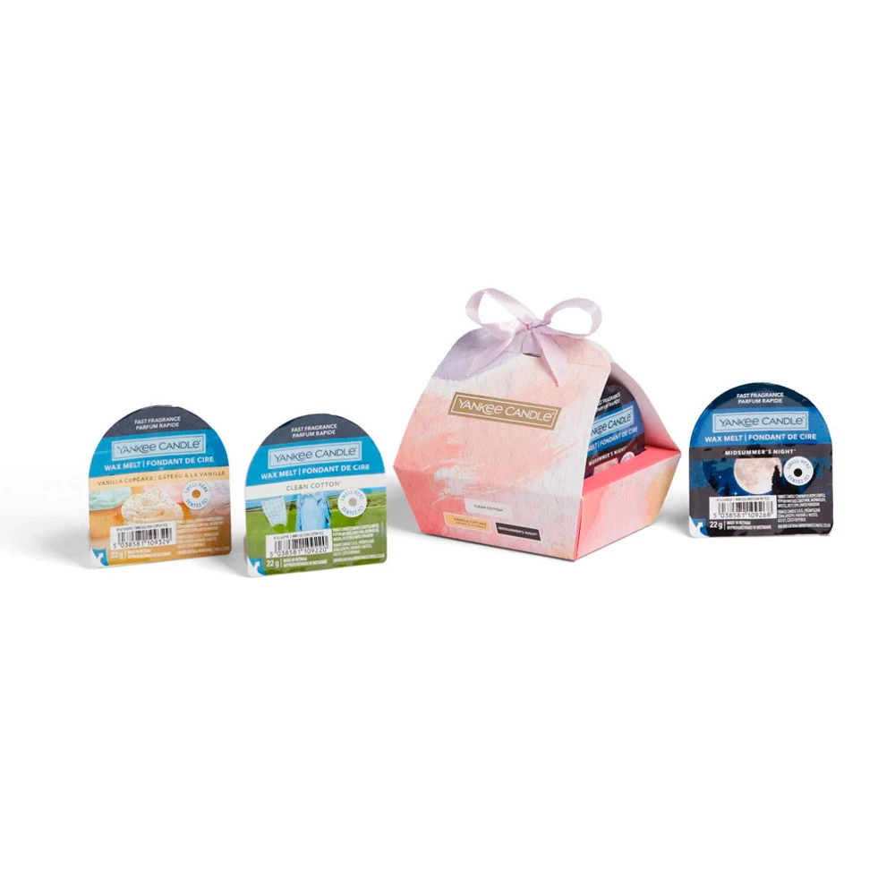 La Confezione Regalo 3 Tarts di Cera da Fondere di Yankee Candle è un set composto da 3 Tarts di cera da fondere. La Confezione Regalo 3 Tarts di Cera da Fondere fa parte della nuova collezione primavera di Yankee Candle: una linea pensata per far provare e innamorare delle fragranze ispirate ai colori del cibo, dei sapori e dello spirito gioioso di un festival d’arte all’aperto. Le confezioni sono decorate con illustrazioni e texture artistiche dalle tonalità acquerello.