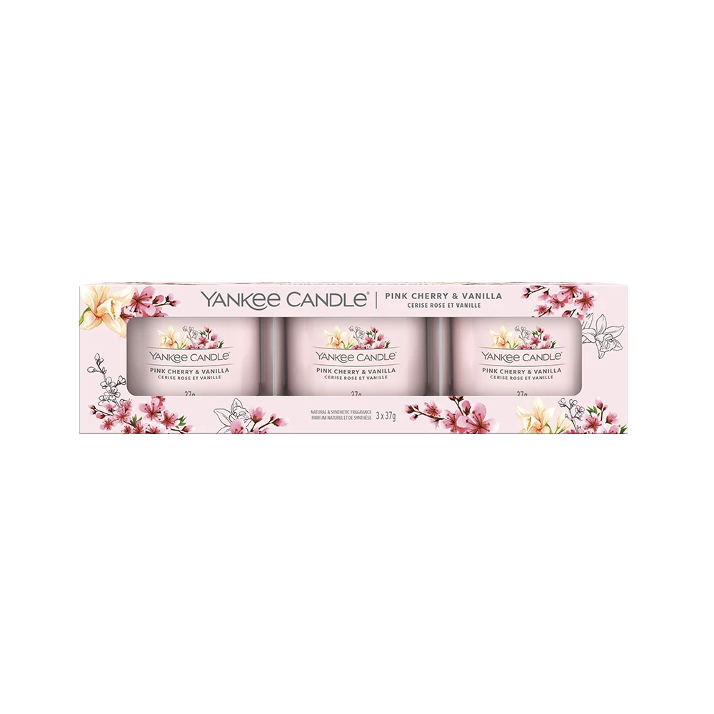 Maggiori informazioni Yankee Candle Signature 3 Candele Votive in Vetro Pink Cherry & Vanilla 10 Ore cad.: