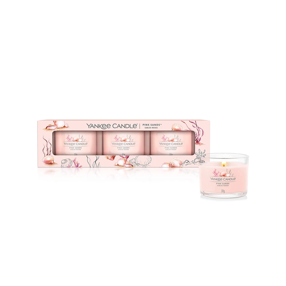 Maggiori informazioni Yankee Candle Signature 3 Candele Votive in Vetro Pink Sands 10 Ore cad.: