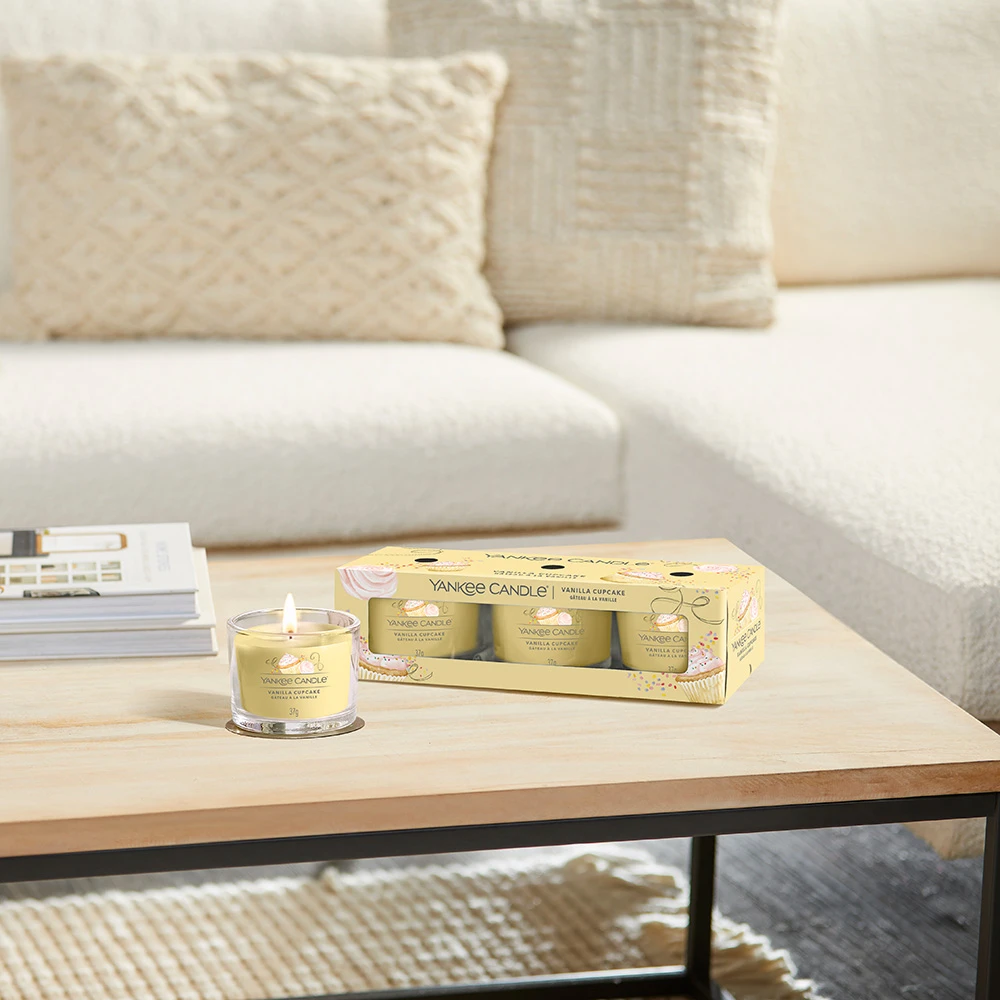 Maggiori informazioni Yankee Candle Signature 3 Candele Votive in Vetro Vanilla Cupcake 10 Ore cad.: