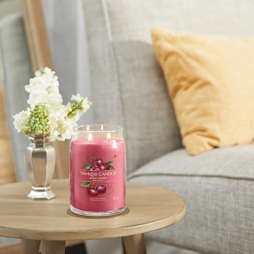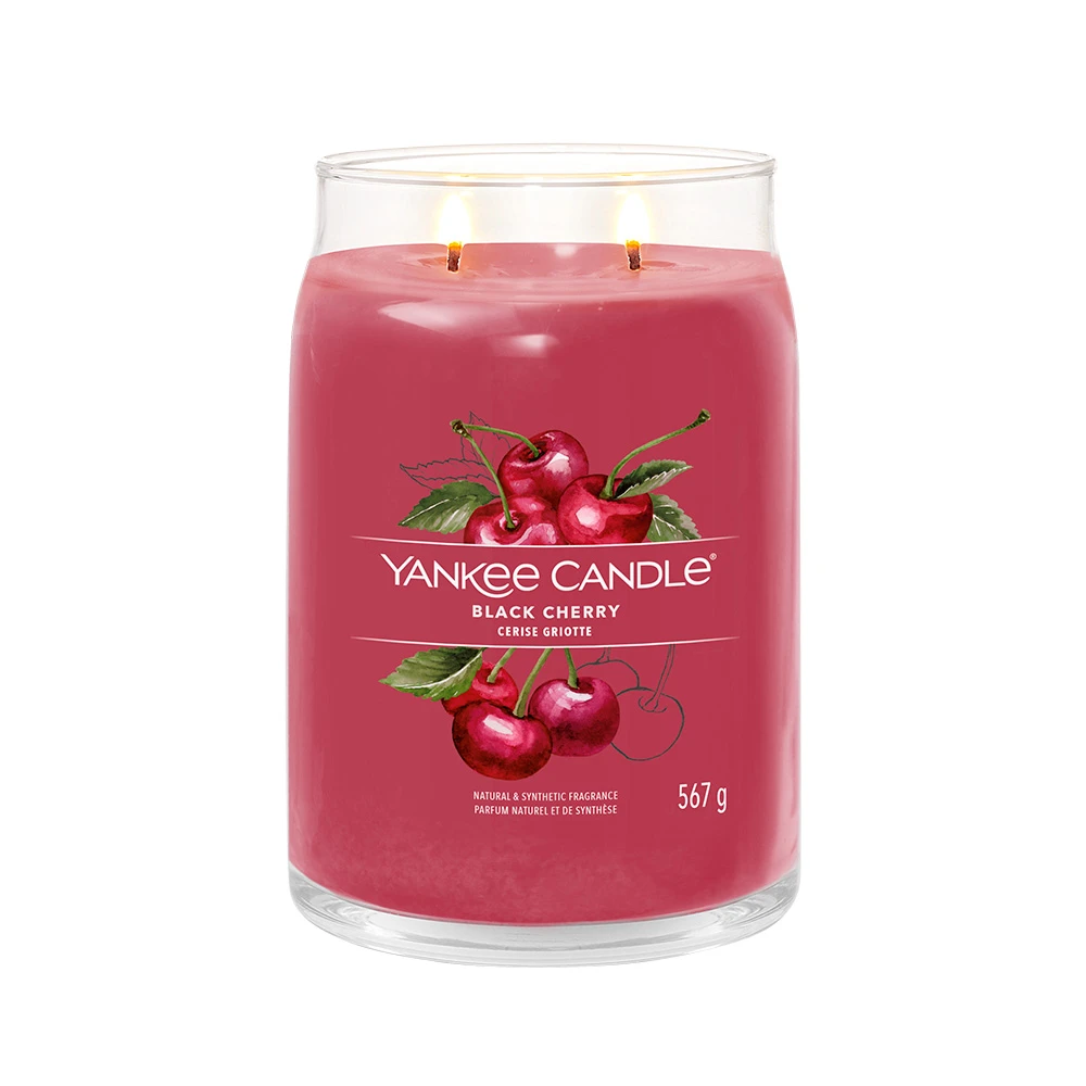 La Giara Grande Black Cherry della Linea Signature di Yankee Candle ti trasporta in un frutteto pieno di amarene. La Black Cherry è una fragranza Fruttata: si ispira alle dolci amarene mature.