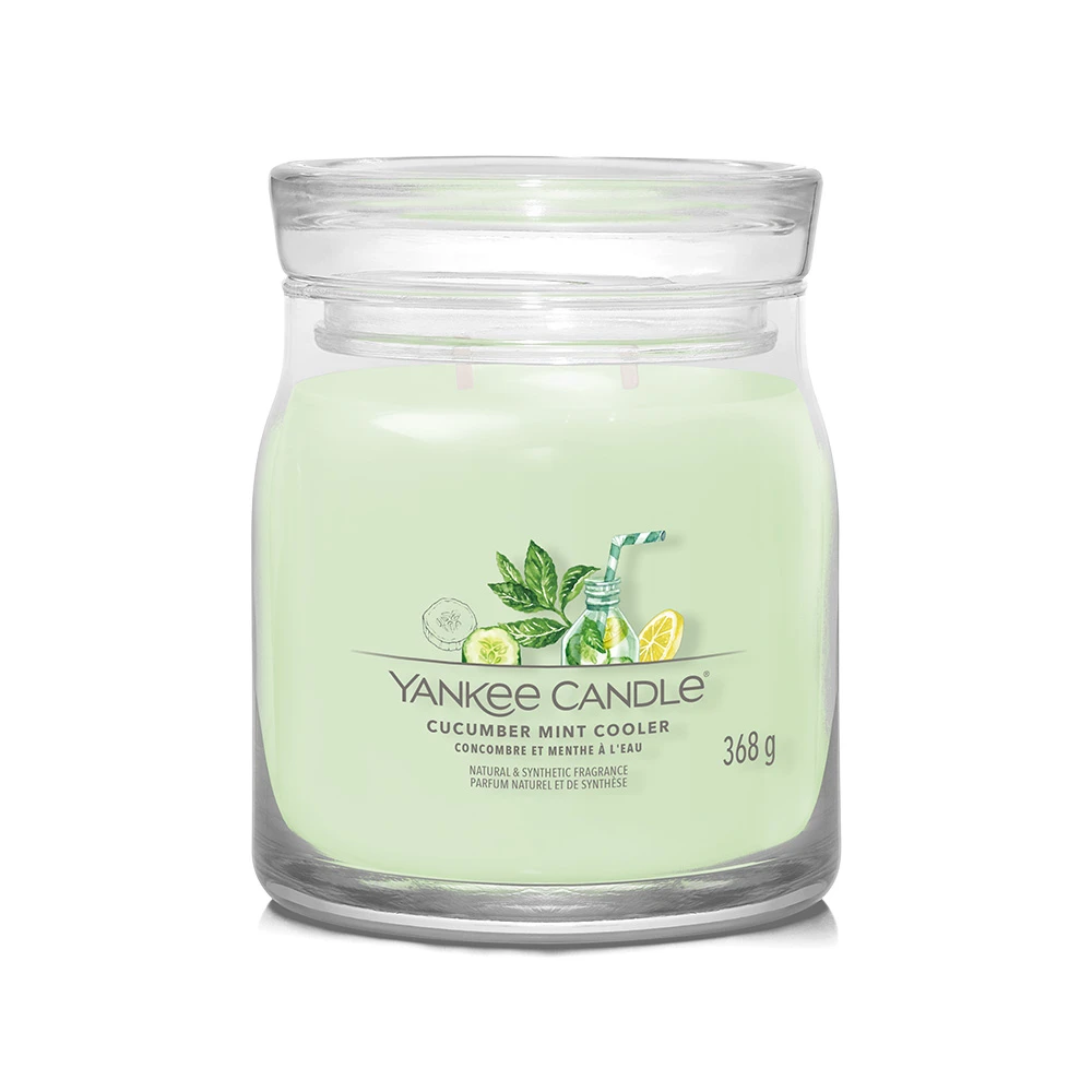 La Giara Media Cucumber Mint Cooler della Linea Signature di Yankee Candle vi farà vivere l’esperienza di una bevanda rinfrescante in una giornata assolata. La sua Fragranza Agrumata evoca le note del cetriolo, del limone e della menta, un mix perfetto per una calda giornata d’estate al parco.