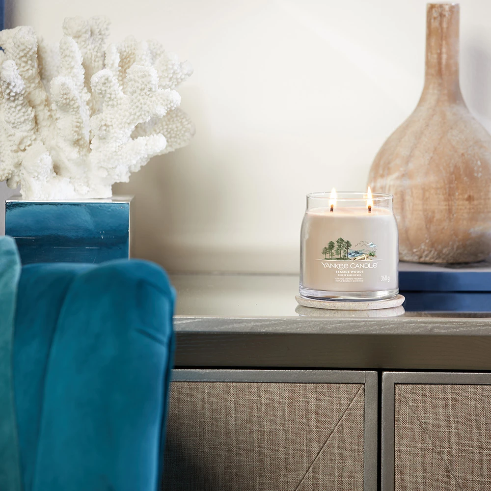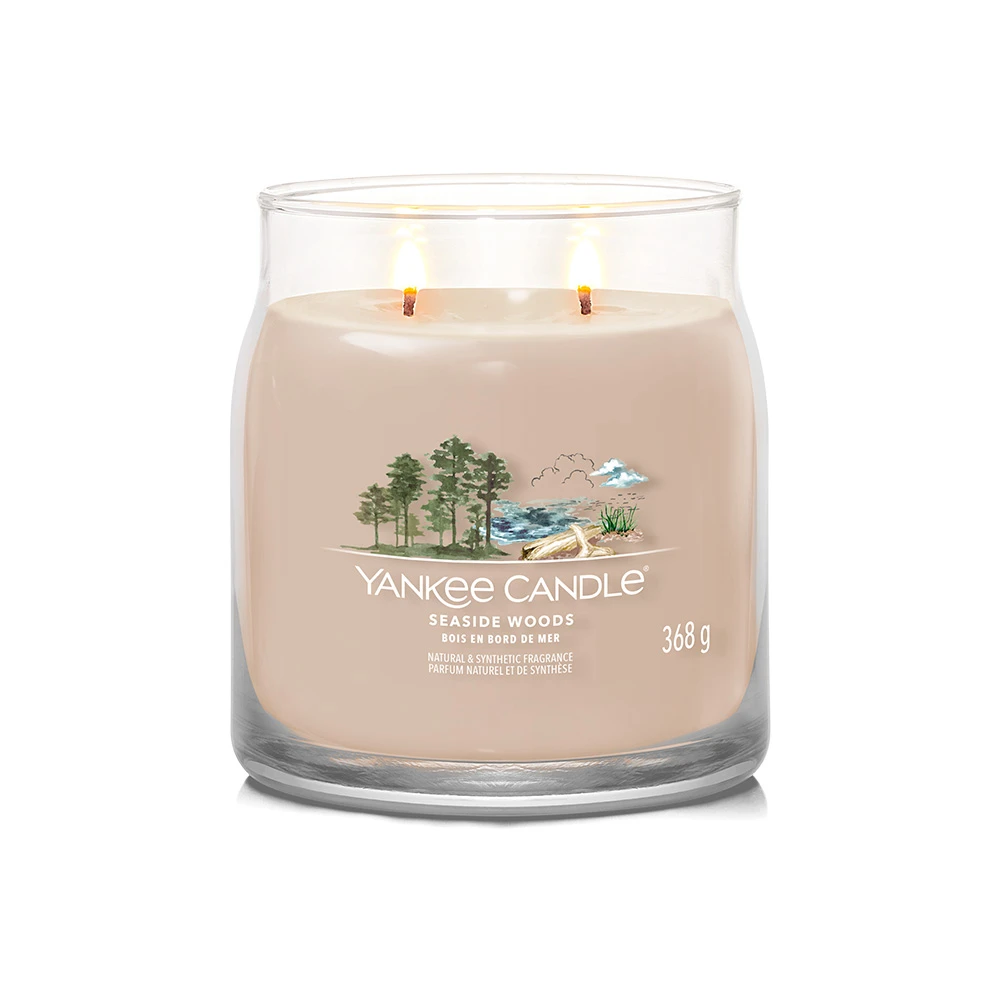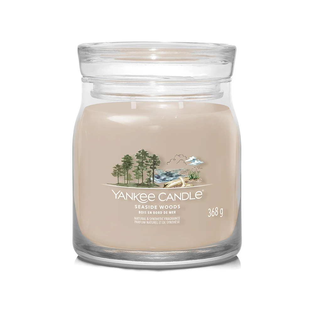 La Giara Media Seaside Woods della Linea Signature di Yankee Candle ti avvolge in un’atmosfera intrigante. La sua Fragranza Legnosa richiama le note del legno trasportato dal mare che si combina con un accordo brillante ispirato ad agrumi e note floreali.