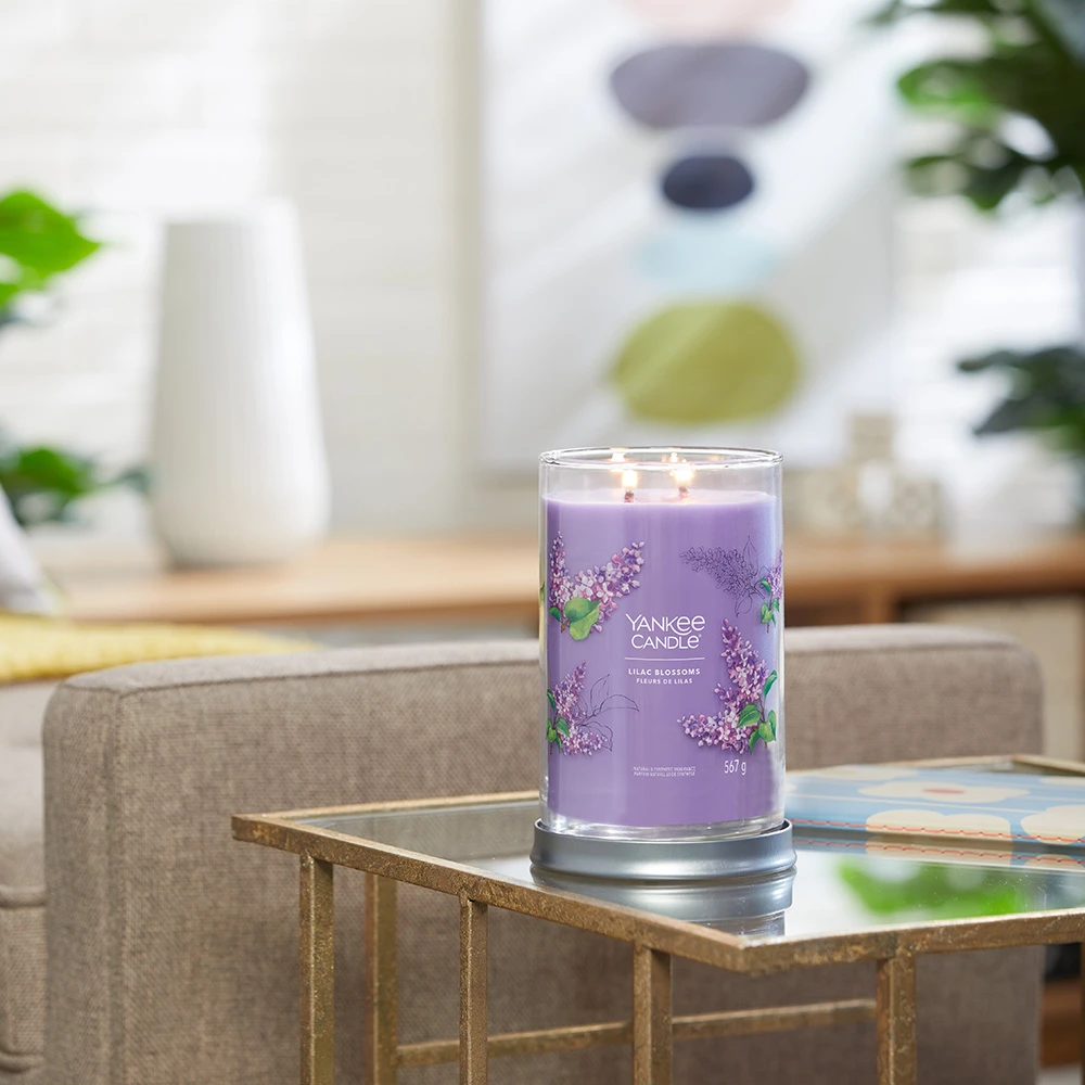 Il Tumbler Grande Lilac Blossoms della Linea Signature di Yankee Candle richiama il profumo della lavanda. La sua invitante Fragranza Fiorita è ispirata ai campi di lavanda e ai lillà bianchi e viola.